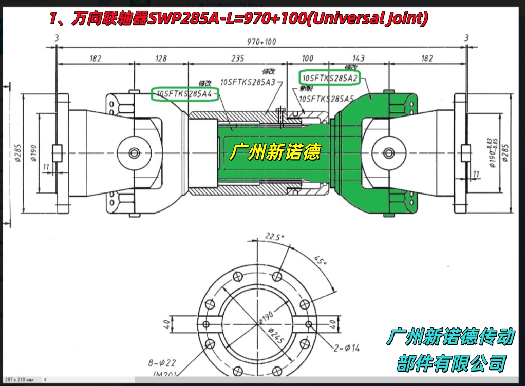 万向联轴器SWP285A-L=970+100尺寸图纸